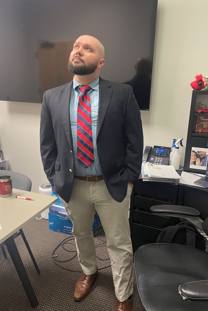 Dr. Bonner is always representing BGA, no matter what day it is. The color choices are very interesting with lots of grays with a plain pair of pants. He is wearing more natural colors. He always makes sure to look and dress well every day.