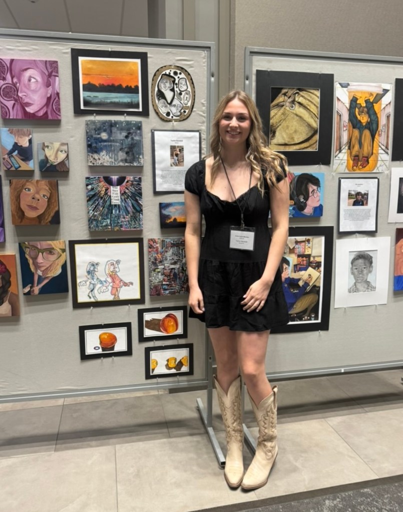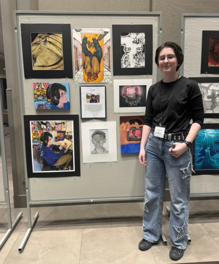 There was an array of amazing visual artists from a range of grade levels this year. There were six students from the AP art class this year (Anna Moser, Weston Howard, Huck Paisley, Bella Covington, and Caroline Roeder), one junior (Lucy Bruff), and three sophomores (Virginia Gregory, Jimin Lee, Avery Pickens, and Elena Miller). Photos of their amazing work are included below!