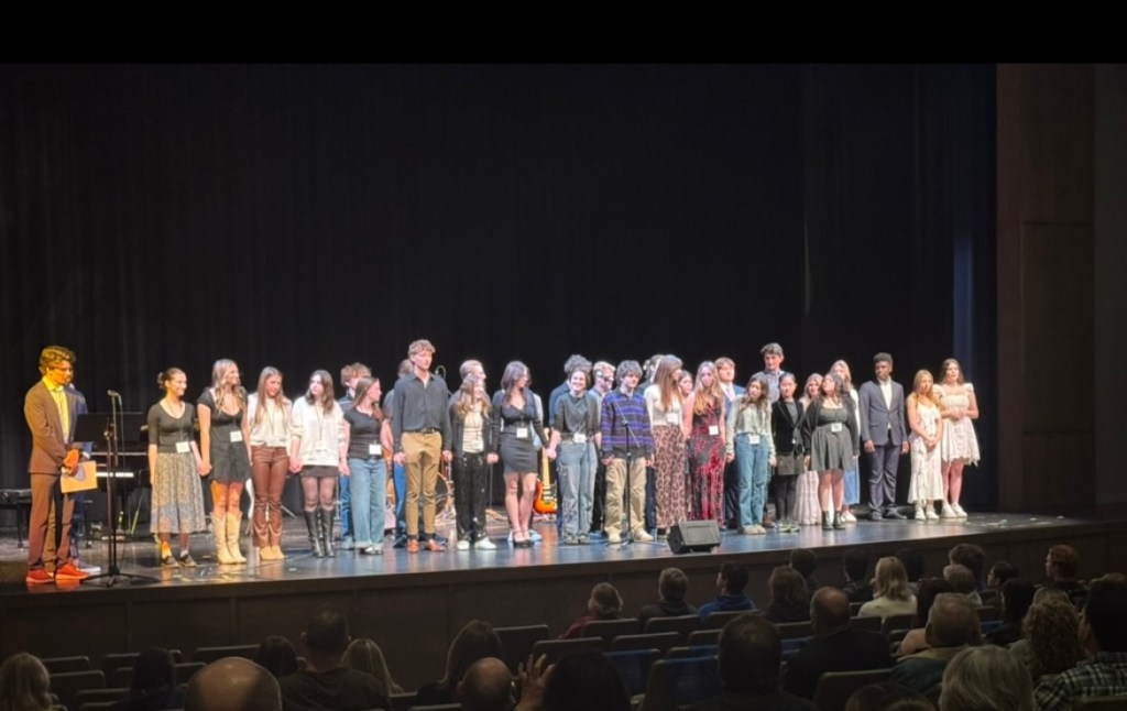 Further into the night, attendees watched various performing artists take to the stage to sing and play some wonderful music! Kyrie Martin and Charlotte Slater sang a duet of “You’re Gonna Go Far” by Noah Kahan, Ella Goldman wowed the audience with her incredible piano skills, and a variety of student bands rocked the house.