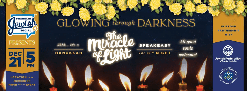 The Miracle of Light This year, the third annual Miracle of Light celebration will take place December 21st in the Factory at Franklin. Celebrating the 8th night of Hanukkah, the event will be speakeasy style and include a menorah lighting, food and drinks, speakers such as the City of Franklin Mayor, and crafts for kids. More information and registration are available on the Franklin Jewish Social webpage, and the event is open to all.