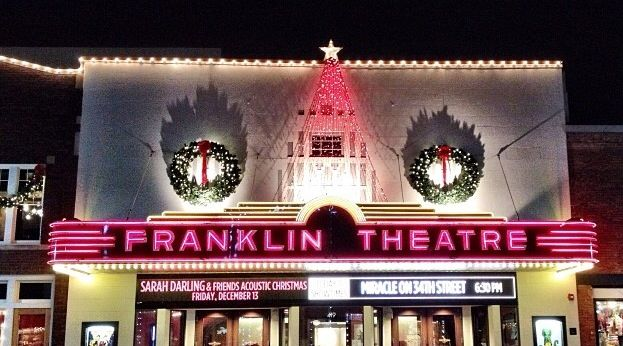 Each December, the Franklin Theatre transforms itself for the Christmas season, with daily holiday-themed showings including movies, performances, and orchestras. The area around the theatre is equally festive, as Main Street is decorated with wreaths and lights.