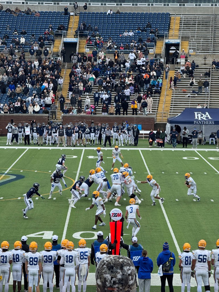 As 11 AM EST began to approach, a ruckus from Finley Stadium of the UTC Mockingbirds filled the cool, dewy, morning air. The Panthers from FRA slowly trickled into the home side of the stadium where their false confidence was easily readable. After the unfortunate loss on the Hill at FRA on September 26, they were unable to comprehend what BGA had in store for the TSSAA Football Blue Cross Bowl.
